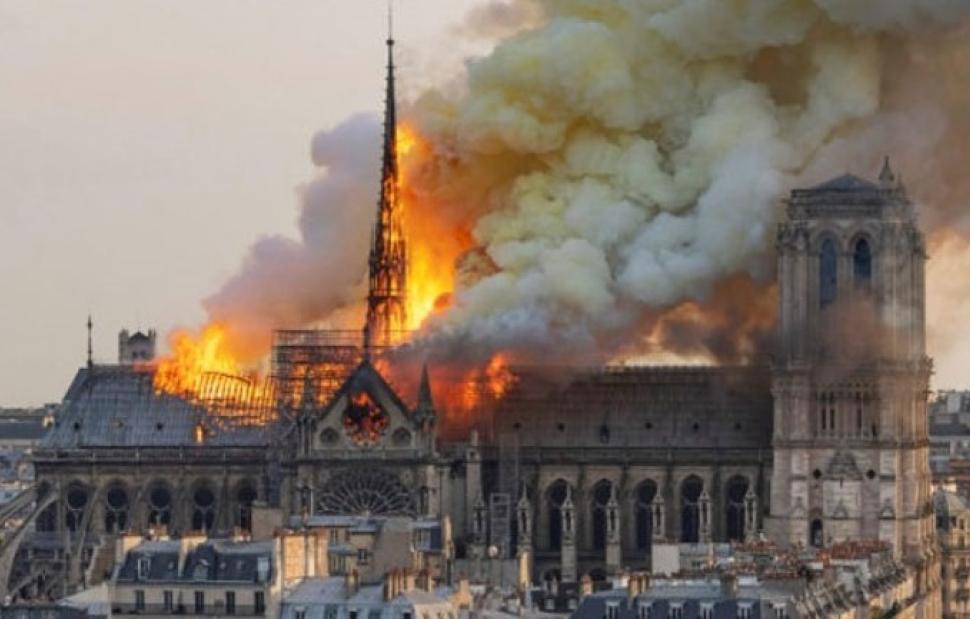 2019: Μεγάλη πυρκαγιά καταστρέφει την οροφή της Παναγίας των Παρισίων καθώς και την κορυφή του ενός οβελού της.