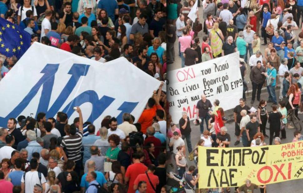 2015: Με τον ΣΥΡΙΖΑ στην Κυβέρνηση διεξάγεται δημοψήφισμα στην Ελλάδα για το νέο πακέτο διάσωσης από τους Ευρωπαίους εταίρους. Συντριπτική υπεροχή του «ΟΧΙ» στην πρόταση των δανειστών της 25ης Ιουνίου 2020. Το «ΟΧΙ» συγκεντρώνει 61,3% των ψήφων, έναντι 38,7% του «ΝΑΙ». Τα άκυρα/λευκά είναι 5,79%, ενώ η συμμετοχή φτάνει στο 62,46%.