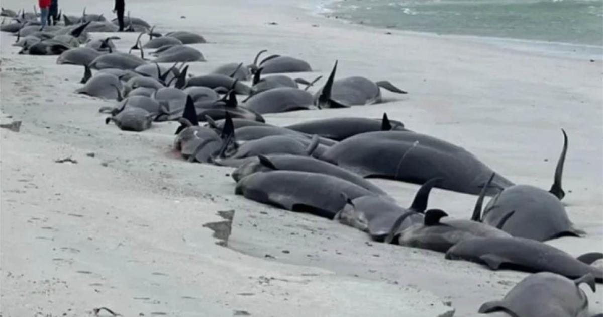 Ένα κοπάδι 77 φαλαινών πιλοτών ξεβράστηκε στην ακτή σε μια παραλία των Ορκάδων, στις βόρειες ακτές της Σκωτίας.