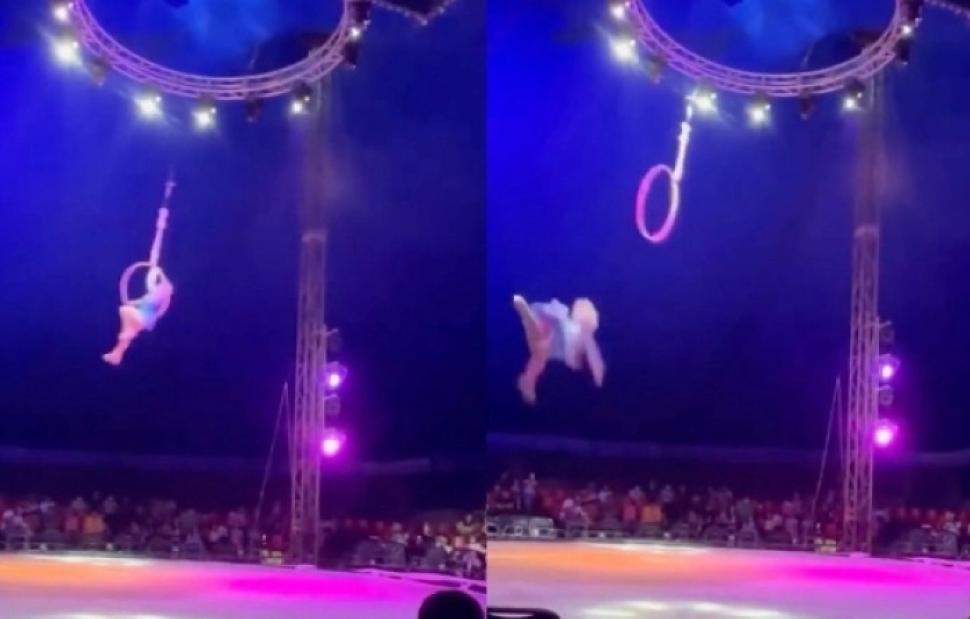 Οι θεατές του τσίρκου Fantasy World On Ice, στο Τάμπικο, σοκαρίστηκαν όταν είδαν την ακροβάτισσα Mia Gonzales Soto, να πέφτει επάνω σε παγοδρόμιο. Το βίντεο δείχνει την Mia να εκτελεί το πρόγραμμά της με στεφάνι, όταν κάποια στιγμή δεν το πιάνει καλά και γλιστρά, με αποτέλεσμα να πέσει κάτω.