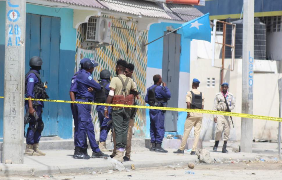 Οι δύο σχεδόν ταυτόχρονες εκρήξεις σημειώθηκαν στον πολυσύχναστο δρόμο Κ5 και υπάρχουν «πολλά θύματα» είπε ο Σαντίκ Ντουντίς, ένας εκπρόσωπος της σομαλικής αστυνομίας. «Θα δώσουμε περισσότερες λεπτομέρειες αργότερα», πρόσθεσε.