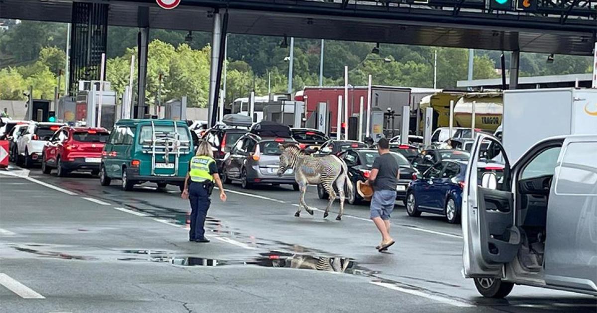 Μια ζέβρα έκανε την εμφάνιση της στα διόδια αυτοκινητόδρομου που συνδέει τη Γαλλία με την Ισπανία στην περιοχή των Βάσκων. Η ζέβρα το έσκασε από το αυτοκίνητο που τη μετέφερε και απομακρύνθηκε καλπάζοντας από αυτό.