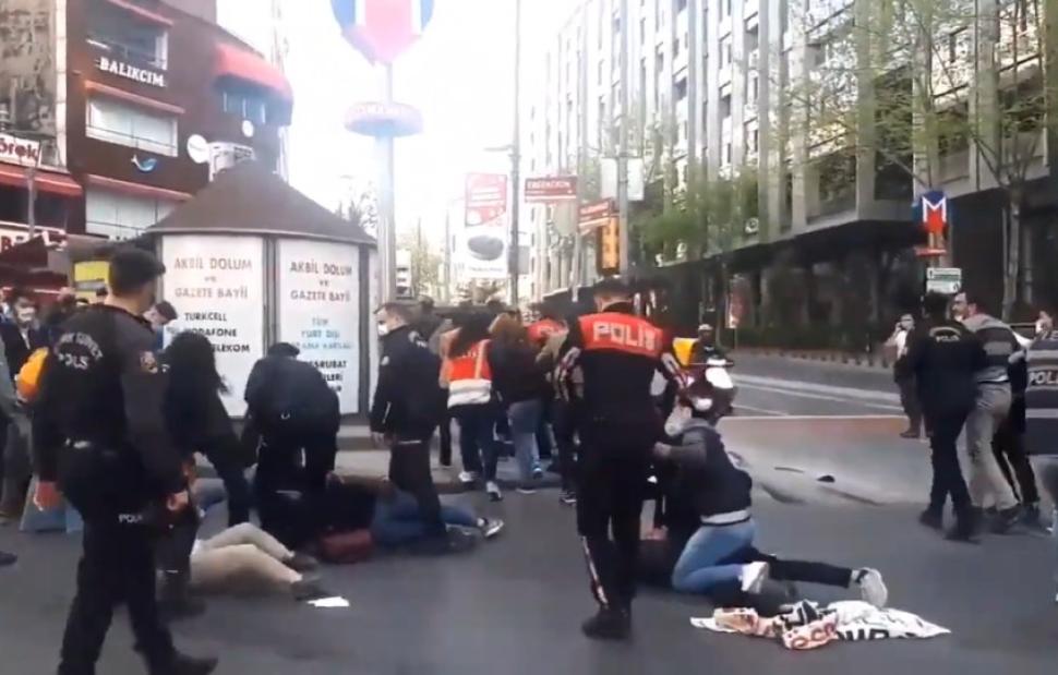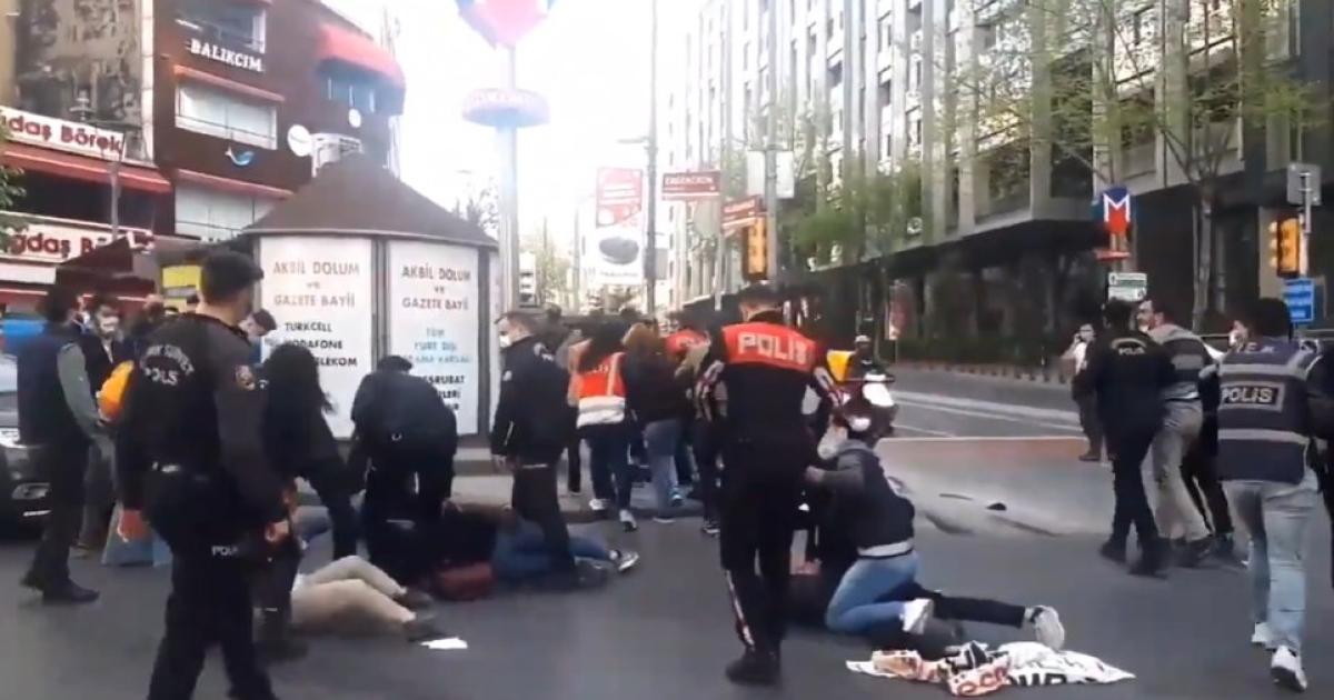 Οι ειδικές αστυνομικές δυνάμεις, αλλά και αστυνομικοί με πολιτική περιβολή, συγκρούστηκαν με ηγέτες εργατικών συνδικάτων, αλλά και άλλους διαδηλωτές, πετώντας μερικούς από αυτούς στο έδαφος, πριν τη σύλληψη δεκάδων διαδηλωτών κοντά στην πλατεία Ταξίμ της Κωνσταντινούπολης, όπως έγινε γνωστό από βίντεο και φωτογραφίες που μετέδωσε το Reuters.