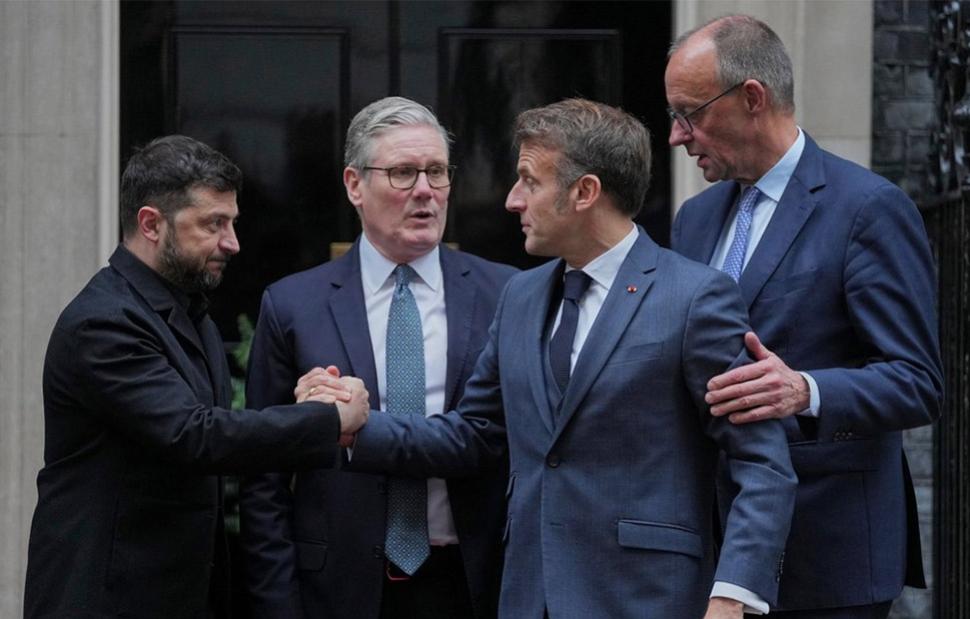 Σε Λονδίνο, Παρίσι και Βερολίνο, ο Ουκρανός πρόεδρος άκουσε υποσχέσεις όπως «στεκόμαστε στο πλευρό της Ουκρανίας», «κανείς δεν πρέπει να αμφιβάλλει για τη στήριξή μας προς την Ουκρανία» και τη δέσμευση Μακρόν ότι η Ευρώπη έχει «πολλούς άσους στο χέρι». Η Τζόρτζια Μελόνι ανανέωσε την πολιτική της στήριξη, ενώ ο Πάπας Λέοντας έδωσε την ευλογία του.