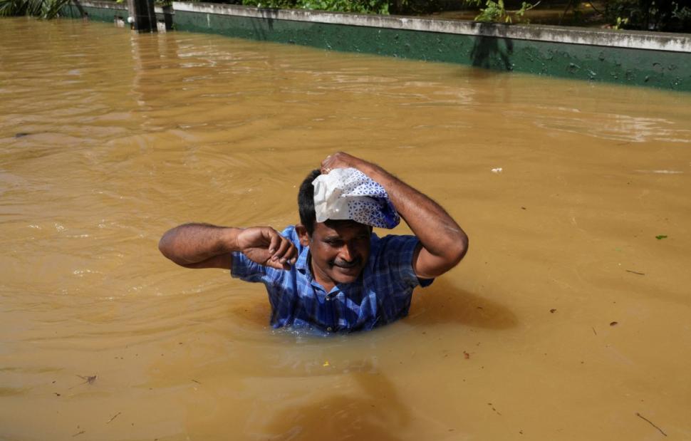 Στην πρωτεύουσα Κολόμπο, δεκάδες οικογένειες έχουν εγκλωβιστεί στα σπίτια τους από τις πλημμύρες. Πρόκειται για μία από περιοχές που επλήγησαν περισσότερο.