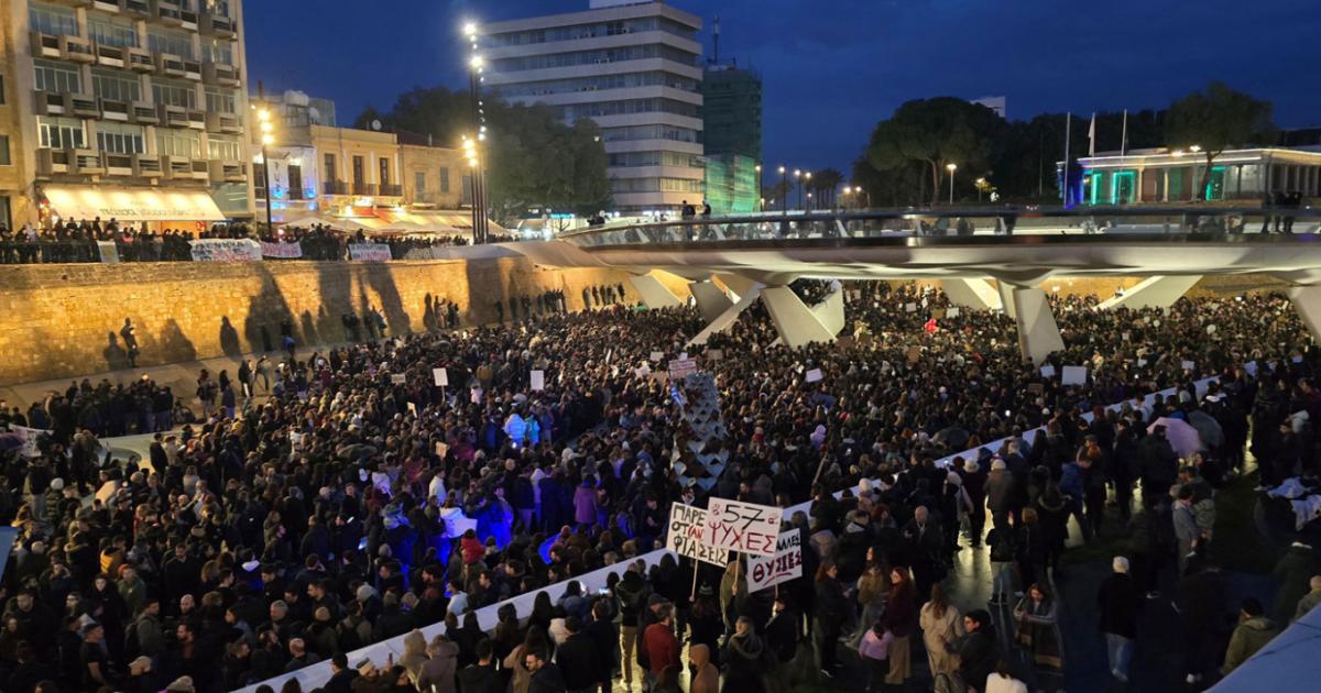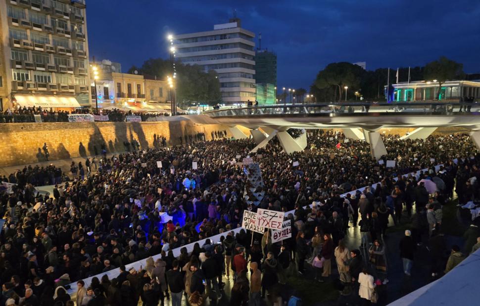 Παρά την βροχή και το κρύο, αρκετοί ήταν οι Κύπριοι που συγκεντρώθηκαν το απόγευμα στην Πλατεία Ελευθερίας στο κέντρο της Λευκωσίας για να τιμήσουν τα 57 θύματα του σιδηροδρομικού δυστυχήματος στα Τέμπη, πριν από 2 χρόνια.
