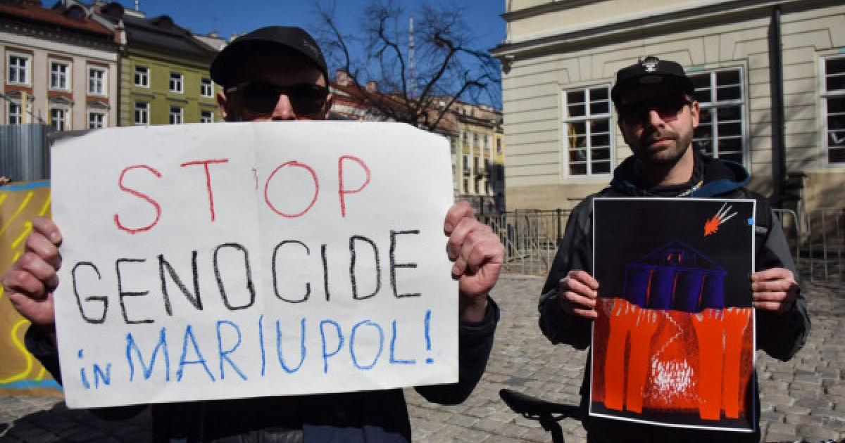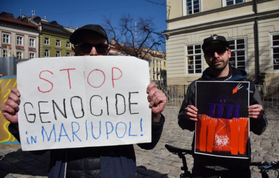 Κρατώντας πλακάτ τα οποία έγραφαν «Η Μαριούπολη φλέγεται» και «Η Μαριούπολη είναι Ουκρανία» πολίτες του Λβιβ διαδήλωσαν κατά των όσων φρικιαστικών γεγονότων εξελίσσονται στην Μαριούπολη.