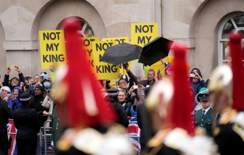 Η αστυνομία συνέλαβε τον ηγέτη της Republic, Γκρέιαμ Σμιθ, και άλλους 51 στο κεντρικό Λονδίνο, ενώ χιλιάδες θαυμαστές του βασιλικού ζεύγους συγκεντρώνονταν στους δρόμους για τη στέψη του Καρόλου. Οι Αρχές δήλωσαν ότι το καθήκον τους να αποτρέψουν την αναστάτωση υπερτερούσε του δικαιώματος διαμαρτυρίας.