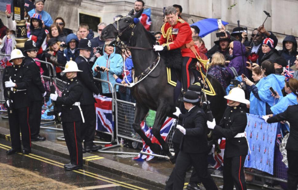 «Τρομακτική στιγμή» κατά την τελετή στέψης του Καρόλου χαρακτηρίζει ο βρετανικός Τύπος την εικόνα του τρομαγμένου μαύρου αλόγου που κινήθηκε προς την πλευρά των θεατών.