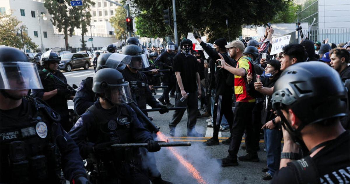 Οι εντάσεις στο Λος Αντζελες κορυφώθηκαν αυτό το Σαββατοκύριακο, μία εβδομάδα μετά τις επιδρομές κατά των μεταναστών, που πυροδότησαν βίαιες διαμαρτυρίες κατά της κυβέρνησης Τραμπ και της Υπηρεσίας Μετανάστευσης.