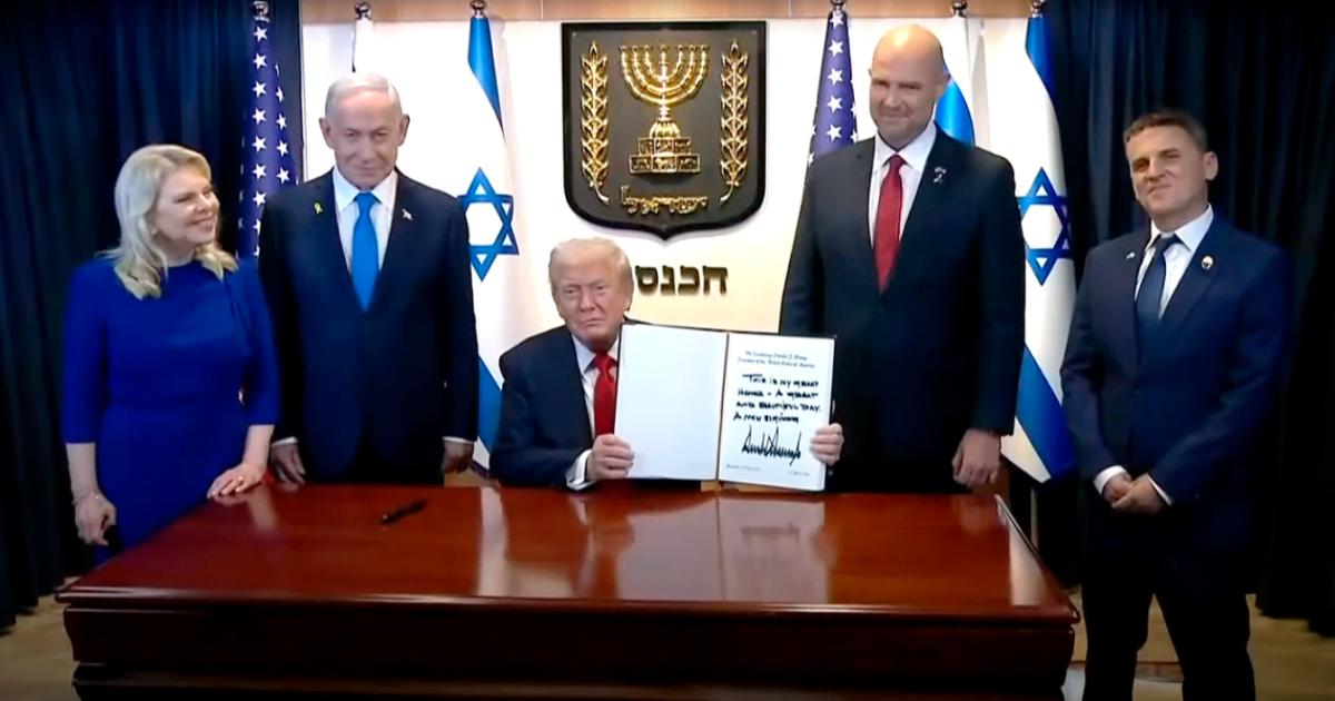 Στην Κνεσέτ έφτασε γύρω στις 11 το πρωί ο Ντόναλντ Τραμπ. Ο Πρόεδρος των Ηνωμένων Πολιτειών πρόκειται να συναντηθεί με οικογένειες ομήρων και στη συνέχεια να εκφωνήσει ομιλία στην Ολομέλεια του ισραηλινού Κοινοβούλίου, στο πλαίσιο της επίσκεψης-αστραπής που πραγματοποιεί στο Ισραήλ πριν μεταβεί στην Αίγυπτο για τη σύνοδο κορυφής για την ειρήνη στη Λωρίδα της Γάζας.