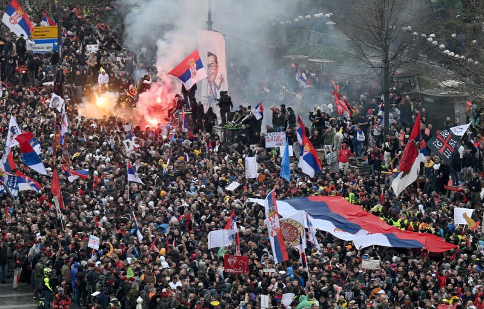 Κατά κύματα χιλιάδες άνθρωποι διαδηλώνουν στο Βελιγράδι από το μεσημέρι σε μία ογκώδη εκδήλωση διαμαρτυρίας έπειτα από μήνες διαδηλώσεων κατά της διαφθοράς με κινητήρια δύναμη τους σέρβους φοιτητές.