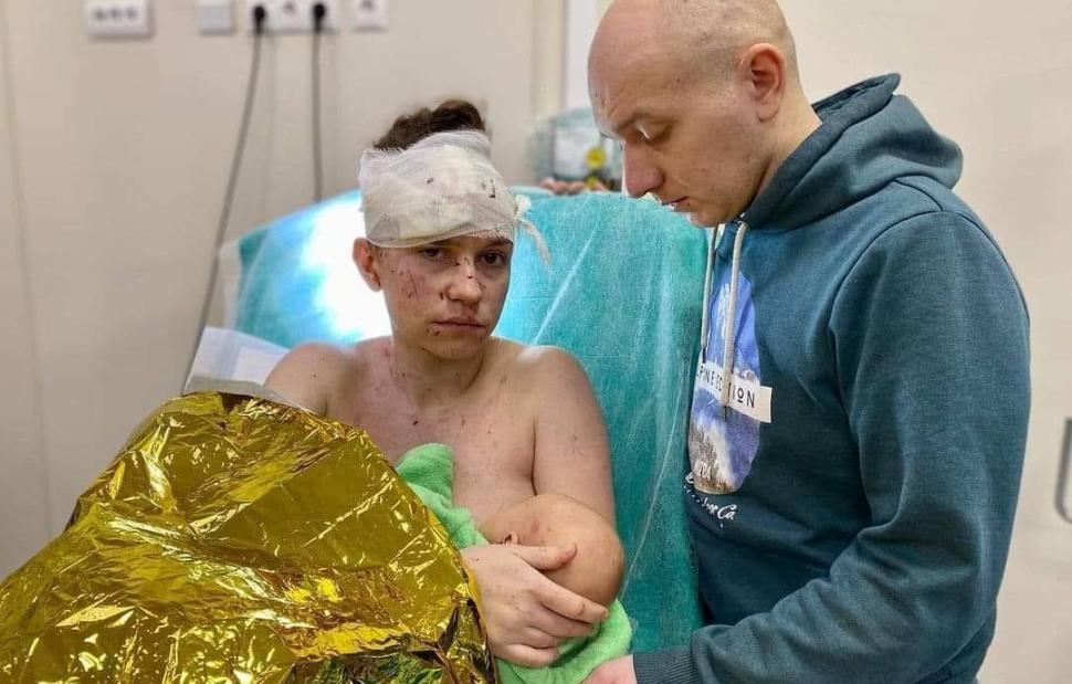 Η νεαρή μητέρα, χρειάστηκε να χειρουργηθεί καθώς είχε πολλαπλά τραύματα εξαιτίας των βομβαρδισμών στο Κίεβο. Το ίδιο και ο σύζυγός της.