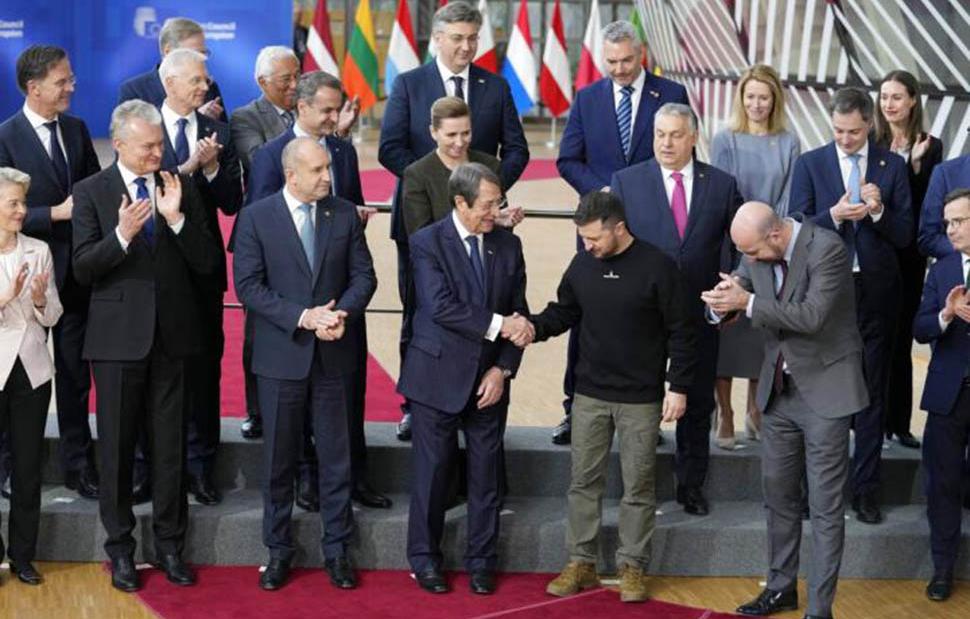 Υπογραμμίζεται πως η ΕΕ ενέκρινε την εκταμίευση έβδομης δόσης 500 εκατ. ευρώ για τη χορήγηση στρατιωτικής βοήθειας στην Ουκρανία, όπως και την εκπαίδευση 30.000 ουκρανών στρατιωτικών εντός 2023.