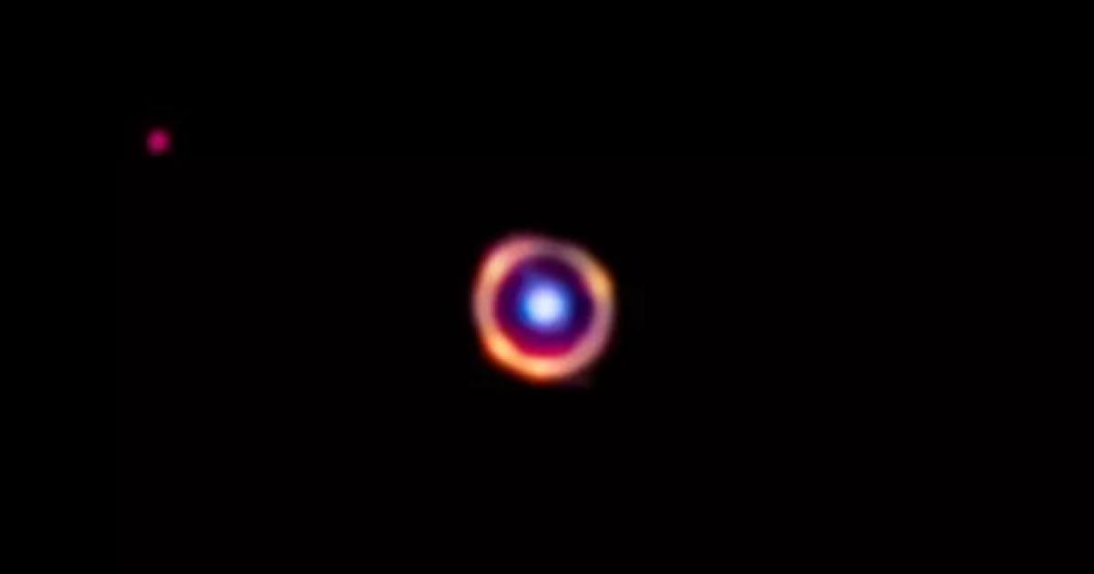 Στην εικόνα που έδωσαν στη δημοσιότητα οι ερευνητές διακρίνεται ο γαλαξίας στον οποίο εντοπίστηκαν τα πολύπλοκα μόρια. Ο γαλαξίας, που απέχει περισσότερο από 12 δισεκατομμύρια έτη φωτός, τυχαίνει να ευθυγραμμίζεται σχεδόν τέλεια με έναν δεύτερο γαλαξία που απέχει μόλις 3 δισεκατομμύρια έτη φωτός από την οπτική μας γωνία στη Γη.