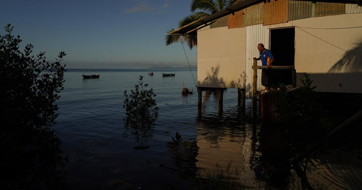 Now, at high tide, the rising Pacific Ocean breaches the seawall and floods Fiji's Serua Island, forcing villagers to decide on whether to stay or relocate https://t.co/ziyMZcgNmL pic.twitter.com/PoGCblI5ee