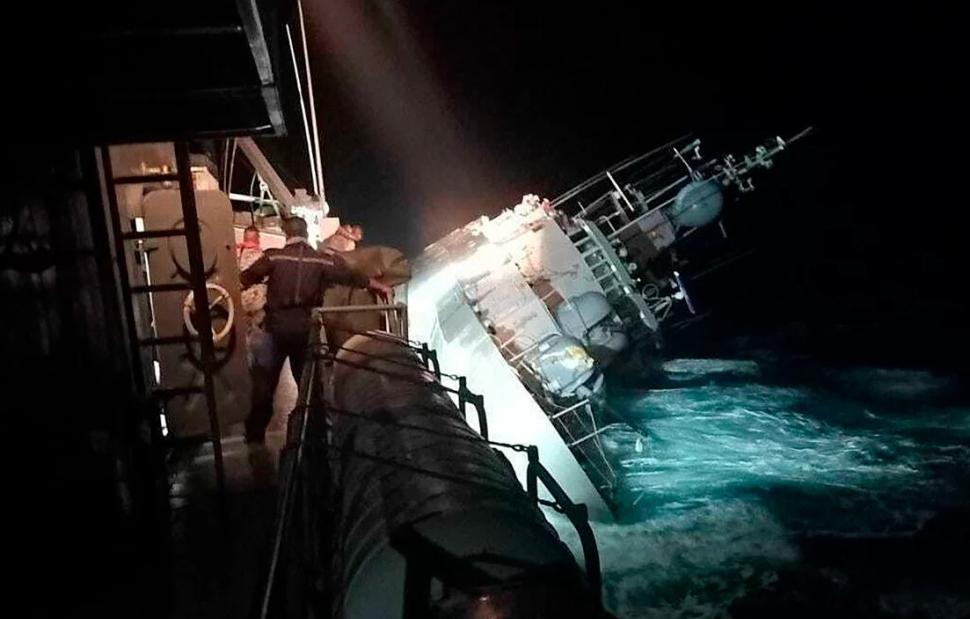 Εν μέσω θαλασσοταραχής, με «κύματα ύψους τριών μέτρων» σύμφωνα με μαρτυρία διασωθέντος, τα ηλεκτρονικά συστήματα του πλοίου υπέστησαν βραχυκύκλωμα και η κορβέτα έμεινε ακυβέρνητη.