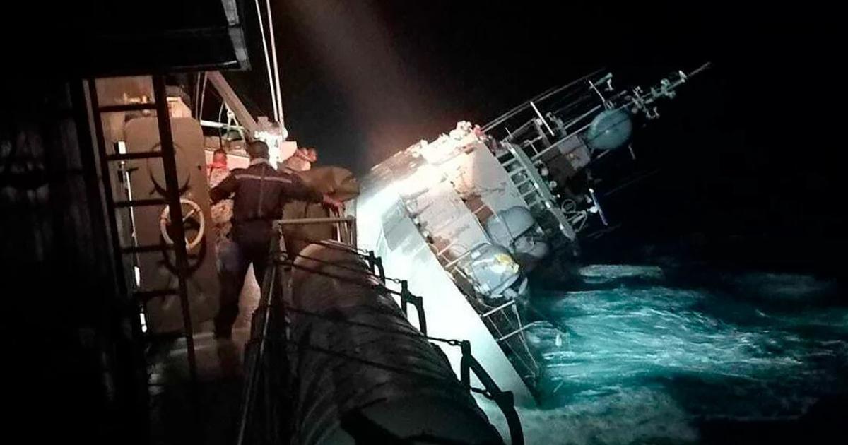 Πάρα τις προσπάθειες του πληρώματος για απάντληση των υδάτων, το πλοίο πήρε κλίση και βυθίστηκε τις πρώτες πρωινές ώρες της περασμένης Δευτέρας. Χάρη στην γιγαντιαία επιχείρηση που στήθηκε με τη συμμετοχή εναέριων και πλωτών μέσων, διασώθηκαν 76 μέλη του πληρώματος.