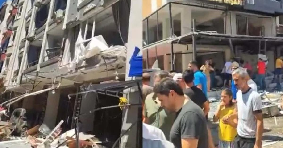 Εικόνες που μεταδόθηκαν από τουρκικά τηλεοπτικά κανάλια δείχνουν τις προσόψεις πολλών κτιρίων που έχουν υποστεί σοβαρές ζημιές από την έκρηξη.