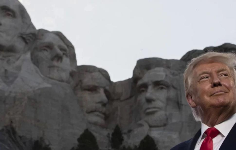 Αν προστεθεί η μορφή του Τραμπ στο κολοσσιαίων διαστάσεων μνημείο (18 μέτρα ύψος και 56 μέτρα πλάτος) στο Όρος Ράσμορ, θα φιγουράρει δίπλα στα πρόσωπα των Τζορτζ Ουάσιγκτον, Αβραάμ Λίνκολν, Τόμας Τζέφερσον και του Θίοντορ Ρούσβελτ.