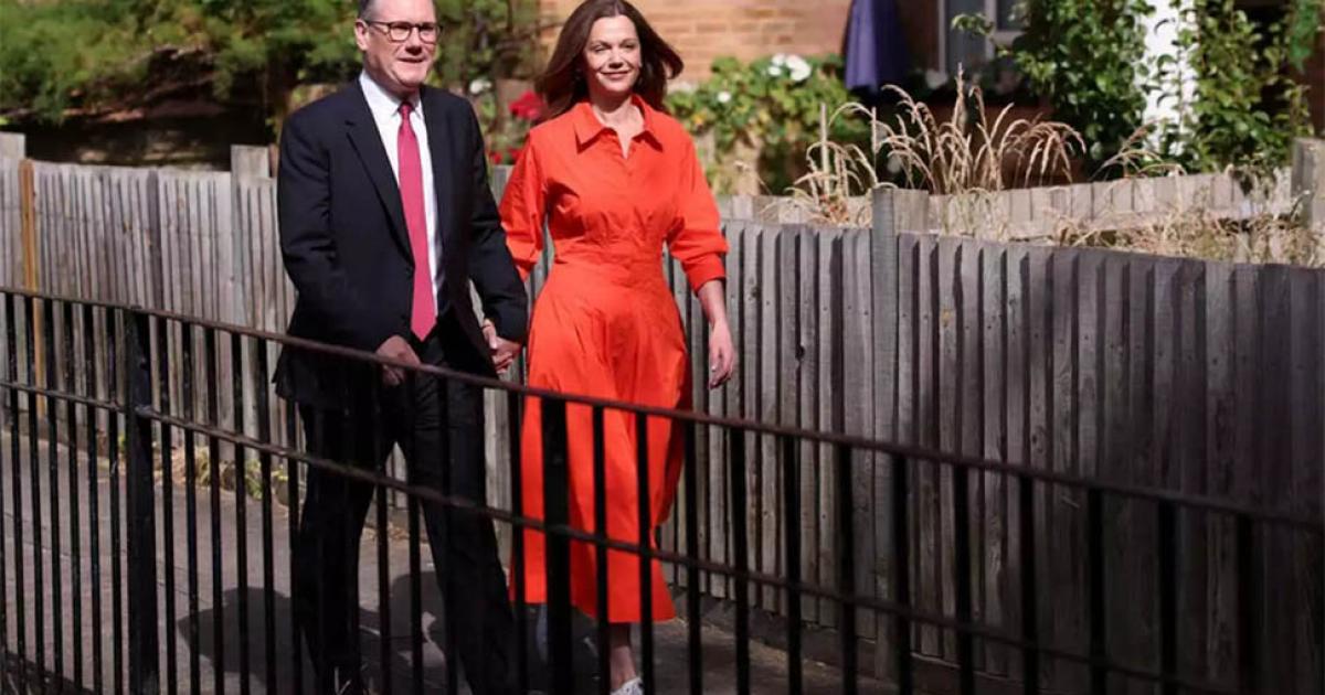 Με φωτογραφία Κιρ Στάρμερ και της συζύγου του, Βικτόρια, κυκλοφορεί ο Guardian, μαζί με τα αποτελέσματα του exit poll.