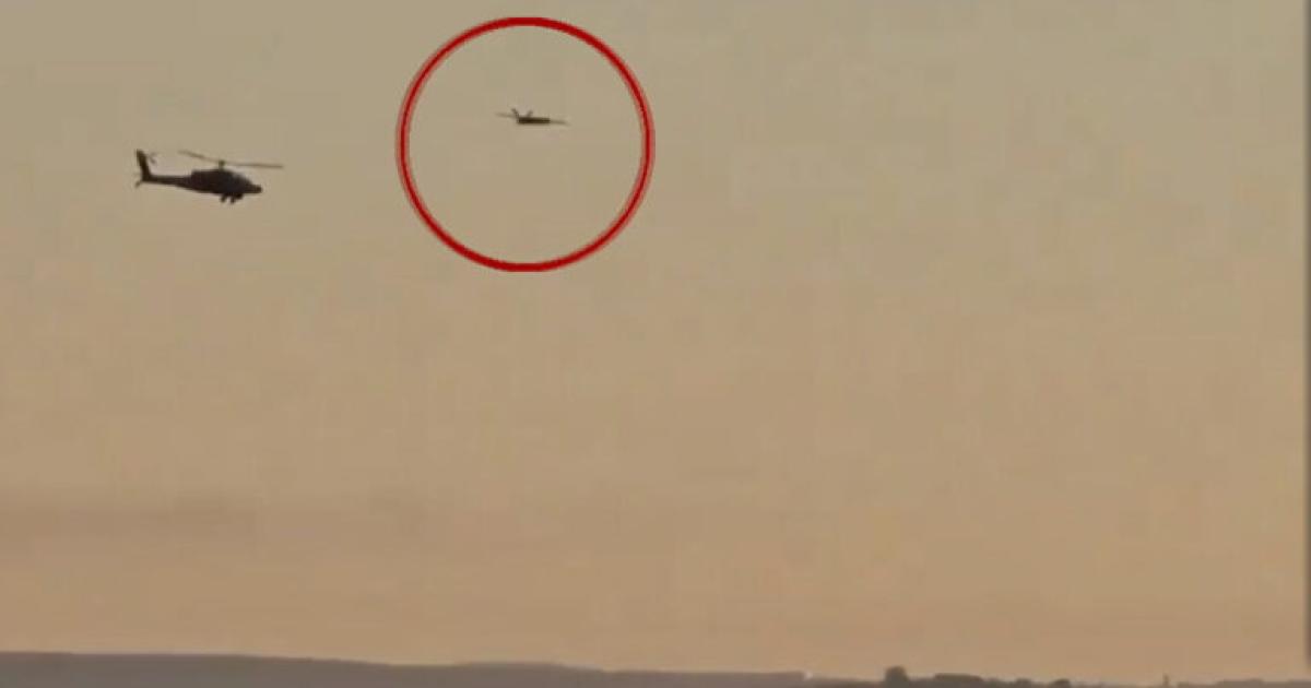 Βίντεο ντοκουμέντο απαθανατίζει την πτήση ενός εκ των τριών μη επανδρωμένων αεροσκαφών – καμικάζι, ενώ σε κοντινή απόσταση στον εναέριο χώρο του Ισραήλ πετά ένα επιθετικό ελικοπτερο Απάτσι.