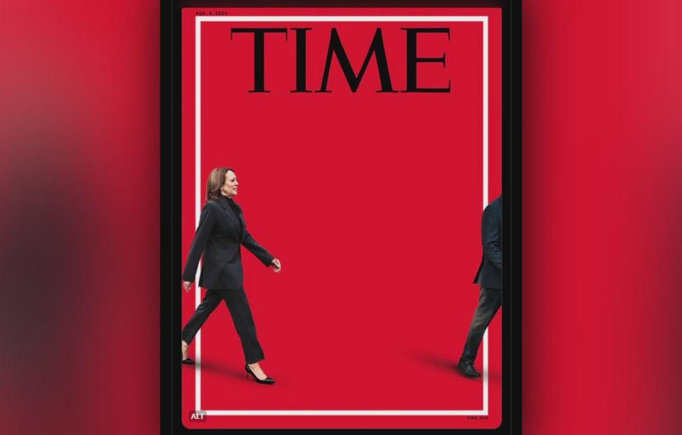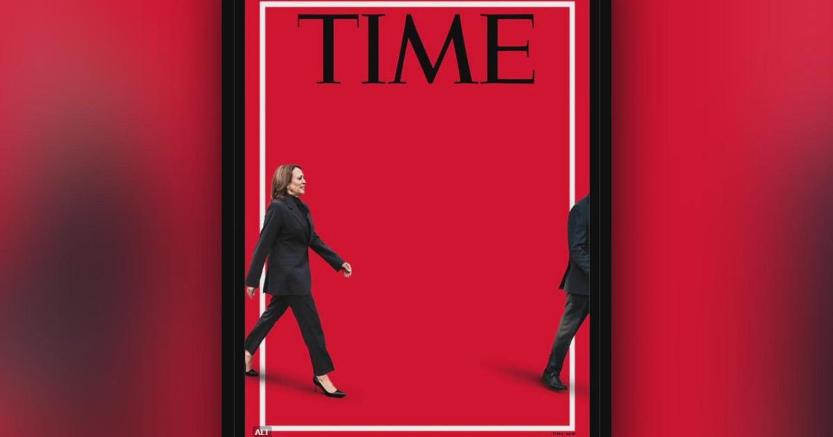 Το περιοδικό Times με τα πάντα to the point εξώφυλλά του πόσταρε την Καμάλα Χάρις στην άκρη του εξωφύλλου, σε κόκκινο φόντο, να έρχεται. Αυτό ήταν το εξώφυλλο που ετοίμασε χθες. Στην άκρη, έχοντας βγει τελείως από το κάδρο ο Τζο Μπάιντεν. Διακρίνεται μόνο η πλάτη του.