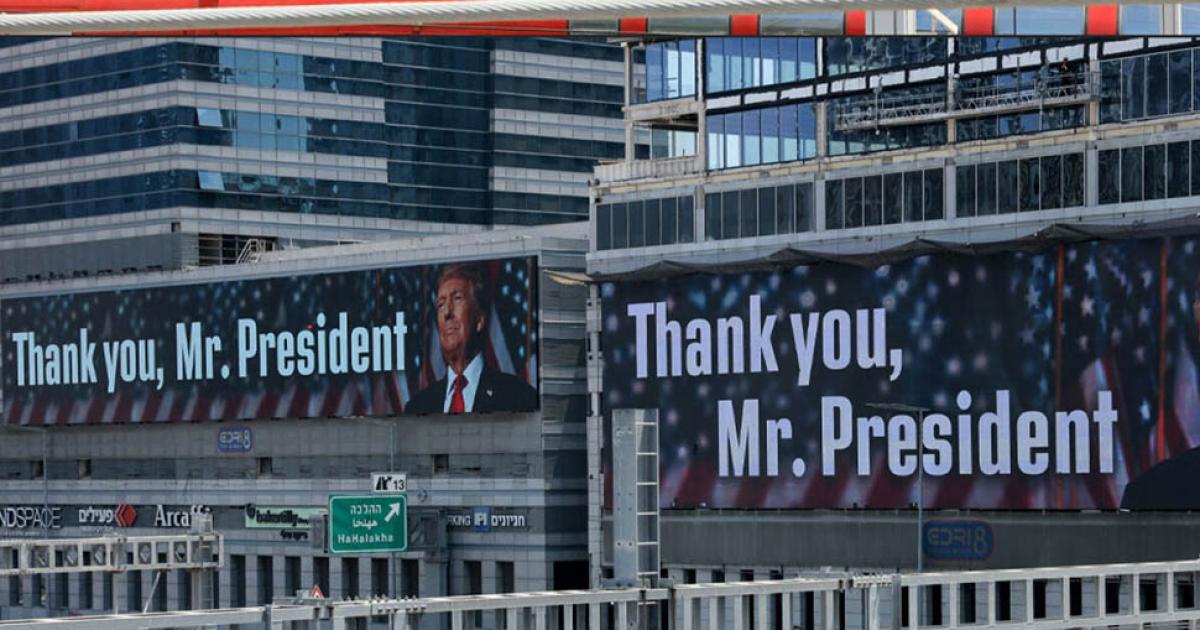 Η ευγνωμοσύνη του Ισραήλ δεν περιορίστηκε σε λόγια. Μεγάλες διαφημιστικές πινακίδες έκαναν την εμφάνισή τους στους δρόμους του Τελ Αβίβ με το πρόσωπο του Ντόναλντ Τραμπ και τη φράση: «Thank you, Mr. President».