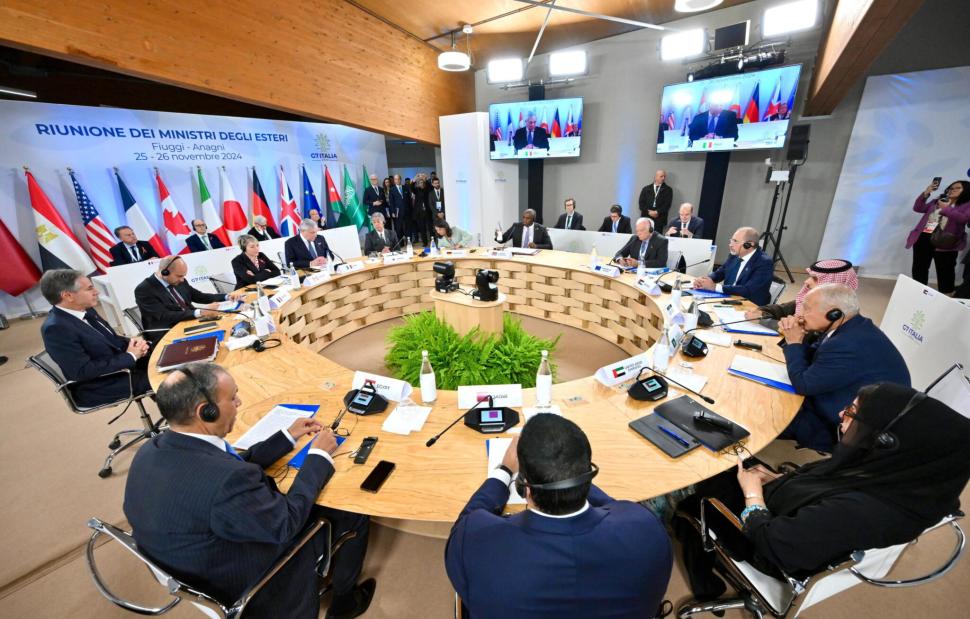 Ο καγκελάριος της Γερμανίας σημείωσε ότι «τα βήματα του Ιράν στο δρόμο προς τα πυρηνικά όπλα οδήγησε το Ισραήλ να πλήξει στρατιωτικούς στόχους του Ιράν» και στόχος του στη σύνοδο του G7 είναι η συμφωνία σε τέσσερα σημεία: