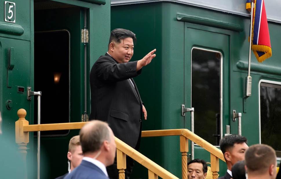Με το χαρακτηριστικό πράσινο τρένο του διέσχισε τα σύνορα με την Κίνα ο ηγέτης της Βόρειας Κορέας, Κιμ Γιονγκ Ουν, για να παραστεί στη στρατιωτική παρέλαση με αφορμή την επίσημη παράδοση της Ιαπωνίας στον Β’ Παγκόσμιο Πόλεμο.