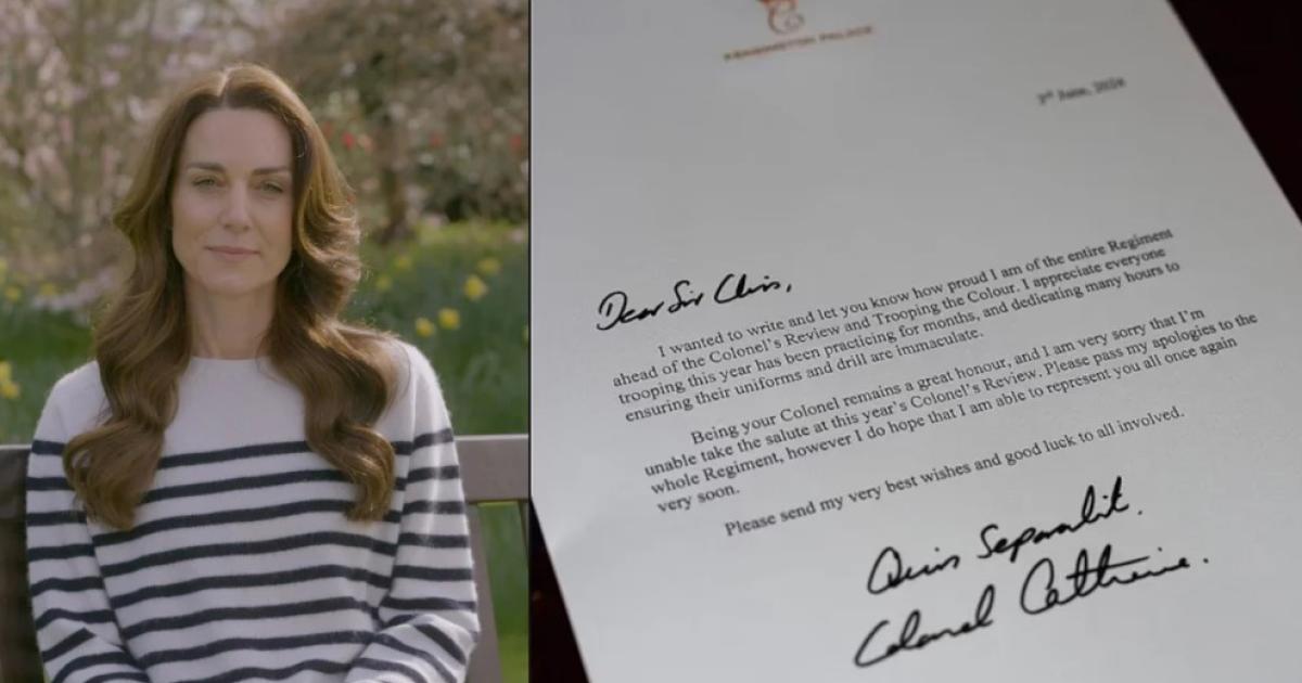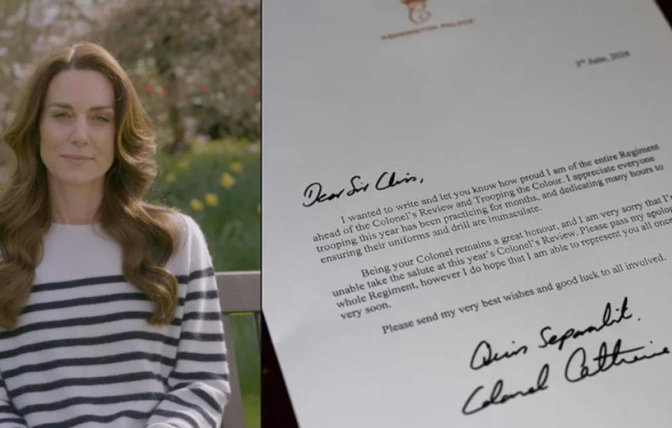 Η Κέιτ, η πριγκίπισσα της Ουαλίας, που υποβάλλεται σε προληπτική χημειοθεραπεία για καρκίνο, έστειλε επιστολή σε μια στρατιωτική μονάδα προκειμένου να ζητήσει συγγνώμη επειδή θα απουσιάσει από μια στρατιωτική παρέλαση σήμερα, προσθέτοντας πως ελπίζει να επιστρέψει πολύ σύντομα.