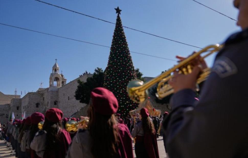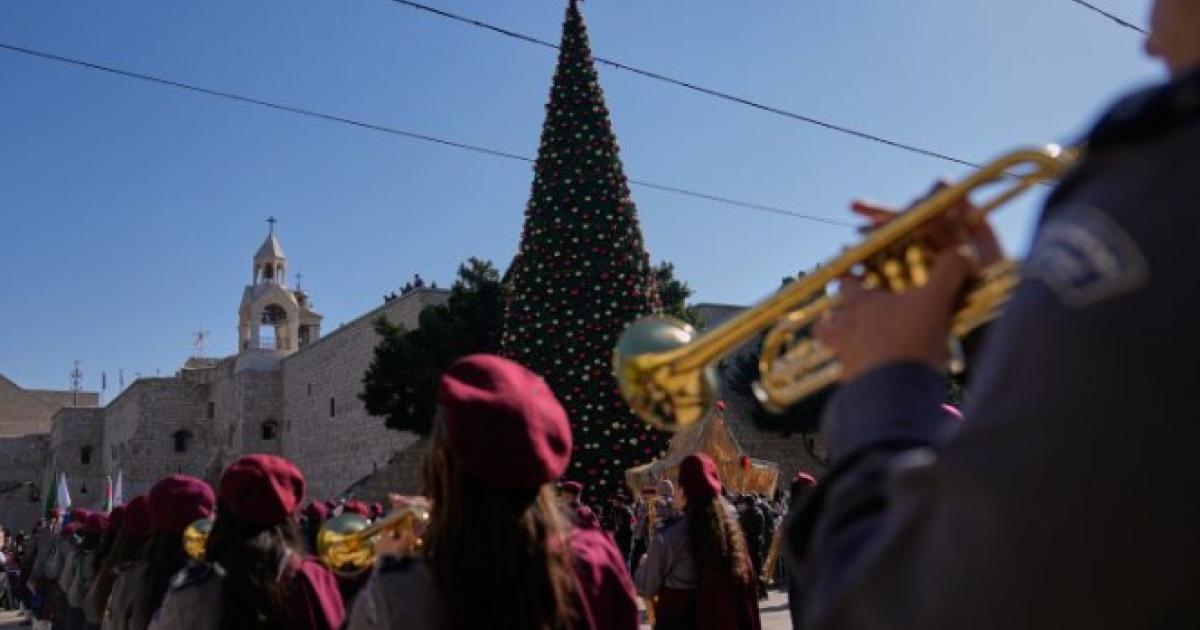 Τα τελευταία δύο χρόνια από αλληλεγγύη προς τους Παλαιστίνιους στην περιοχή, οι εορτασμοί είχαν ακυρωθεί, αλλά το τεράστιο χριστουγεννιάτικο δέντρο, διακοσμημένο με κόκκινα και χρυσά στολίδια, φωτίστηκε ξανά φέτος στις αρχές Δεκεμβρίου μπροστά από τον Ναό της Γεννήσεως. Αυτό η χαρά κατέστη εφικτό λόγω της πολύ εύθραυστης εκεχειρίας που ισχύει στη Γάζα για πάνω από δύο μήνες.