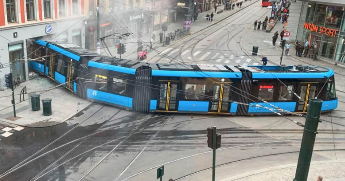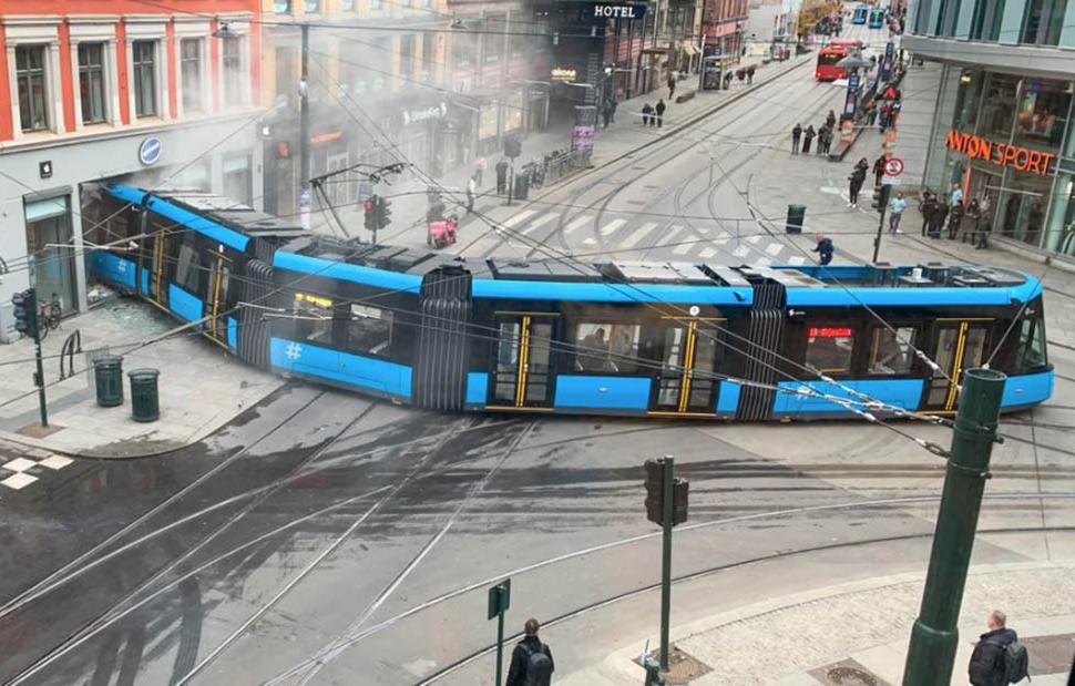 Εικόνες από το σημείο που δημοσίευσαν τα νορβηγικά μέσα ενημέρωσης έδειχναν ένα μπλε τραμ που είχε εισχωρήσει σε κατάστημα ηλεκτρονικών υπολογιστών στο κέντρο της νορβηγικής πρωτεύουσας.