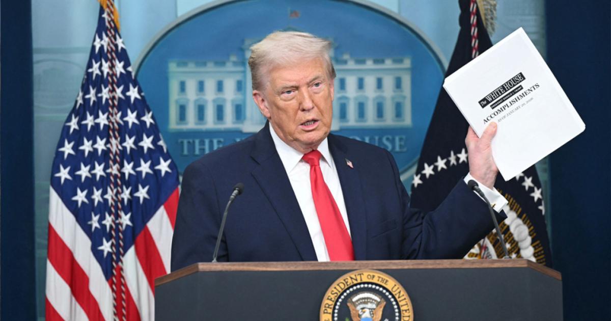 Ο Ντόναλντ Τραμπ ανέβηκε στο βήμα του Λευκού Οίκου με ένα μεγάλο ντοσιέ με αρχεία που αποκαλεί «κατάλογο των επιτευγμάτων του». Ο Πρόεδρος των ΗΠΑ δείχνει μερικά από αυτά στους παρευρισκόμενους και μιλά κυρίως για τις μεταναστευτικές πολιτικές του των τελευταίων 12 μηνών.