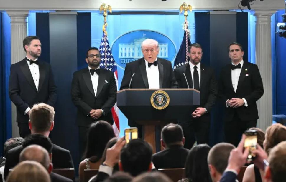 «Αυτό δεν θα με αποτρέψει να κερδίσω τον πόλεμο στο Ιράν», δήλωσε ο Αμερικανός πρόεδρος στους δημοσιογράφους μερικές ώρες μετά τους πυροβολισμούς στη δεξίωση της Ένωσης των ανταποκριτών που είναι διαπιστευμένοι στο Λευκό Οίκο, από την οποία απομακρύνθηκε εσπευσμένα.