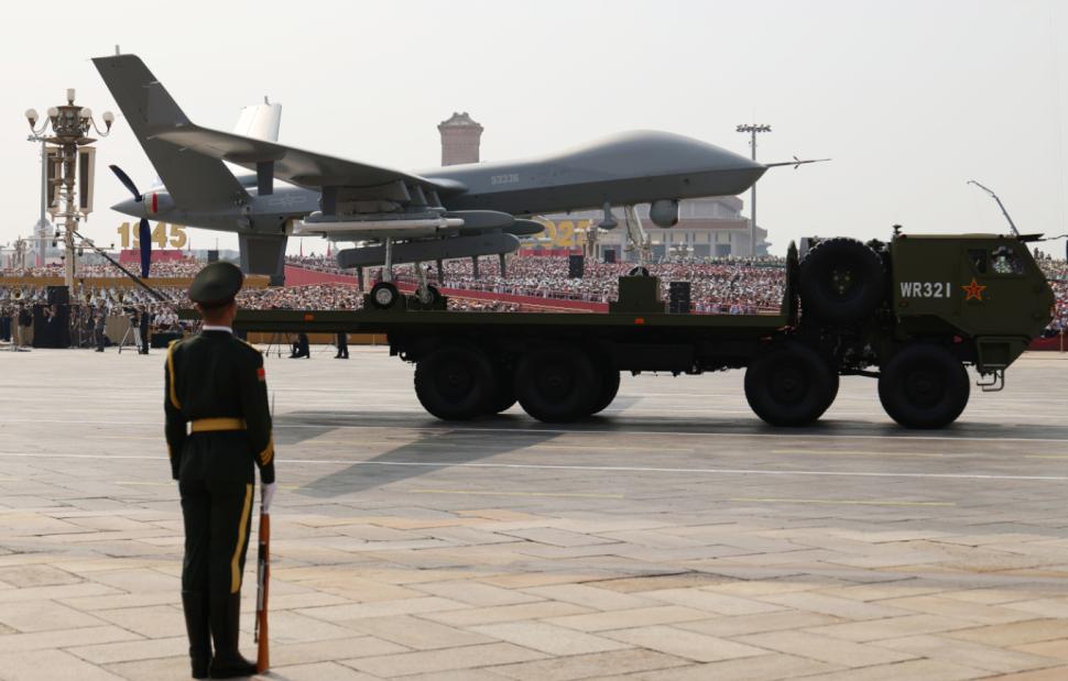 Η Κίνα έδωσε έμφαση και στα μη επανδρωμένα συστήματα, με την παρουσίαση drones και «ρομποτικών λύκων» που μεταφέρονταν πάνω σε οχήματα. Στην παρέλαση εμφανίστηκε και το υποβρύχιο drone AJX002, καθώς και νέα μη επανδρωμένα ελικόπτερα για χρήση από πολεμικά πλοία.