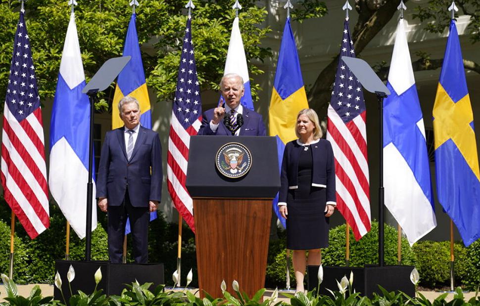 «Σήμερα είμαι υπερήφανος που καλωσορίζω και προσφέρω την ισχυρή υποστήριξη των Ηνωμένων Πολιτειών για τις αιτήσεις δύο μεγάλων δημοκρατιών και δύο στενών, πολύ ικανών εταίρων, να ενταχθούν στην ισχυρότερη, πιο δυνατή αμυντική συμμαχία στην ιστορία του κόσμου. Δύο περήφανες, ανεξάρτητες χώρες, που ασκούν τα κυριαρχικά τους δικαιώματα, μπορούν να αποφασίζουν για την ασφάλειά τους» είπε ο Μπάιντεν, πλαισιωμένος από τη Σουηδή πρωθυπουργό και τον Φινλανδό πρόεδρο.