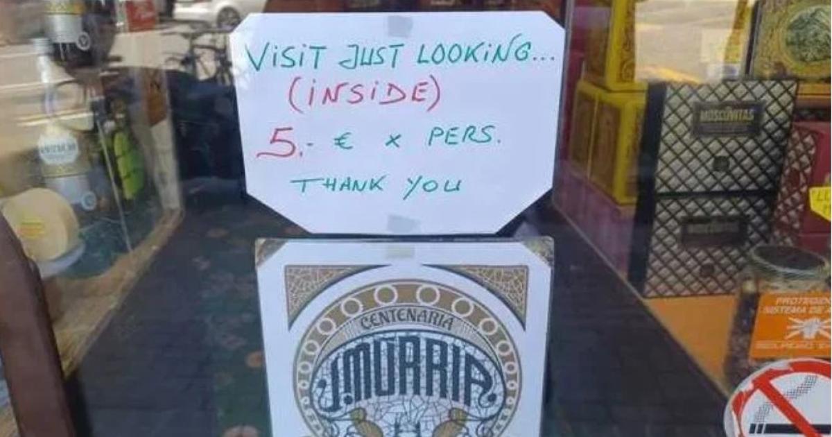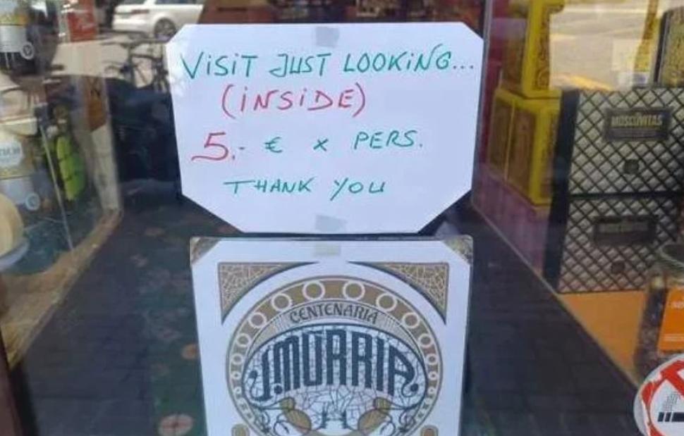 Σε μία πρωτοφανή κίνηση προχώρησαν ιδιοκτήτες παντοπωλείου στην Ισπανία. Οι ιδιοκτήτες του Queviures Múrria, ενός παντοπωλείου στη Βαρκελώνη, έχουν βαρεθεί τους τουρίστες που έρχονται μόνο για να δουν και έχουν βάλει μια πινακίδα που ανακοινώνει ότι θα πληρώνουν 5 ευρώ μόνο και μόνο για να ρίξουν μια ματιά.