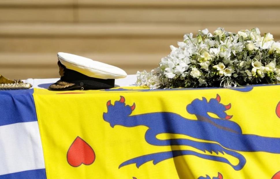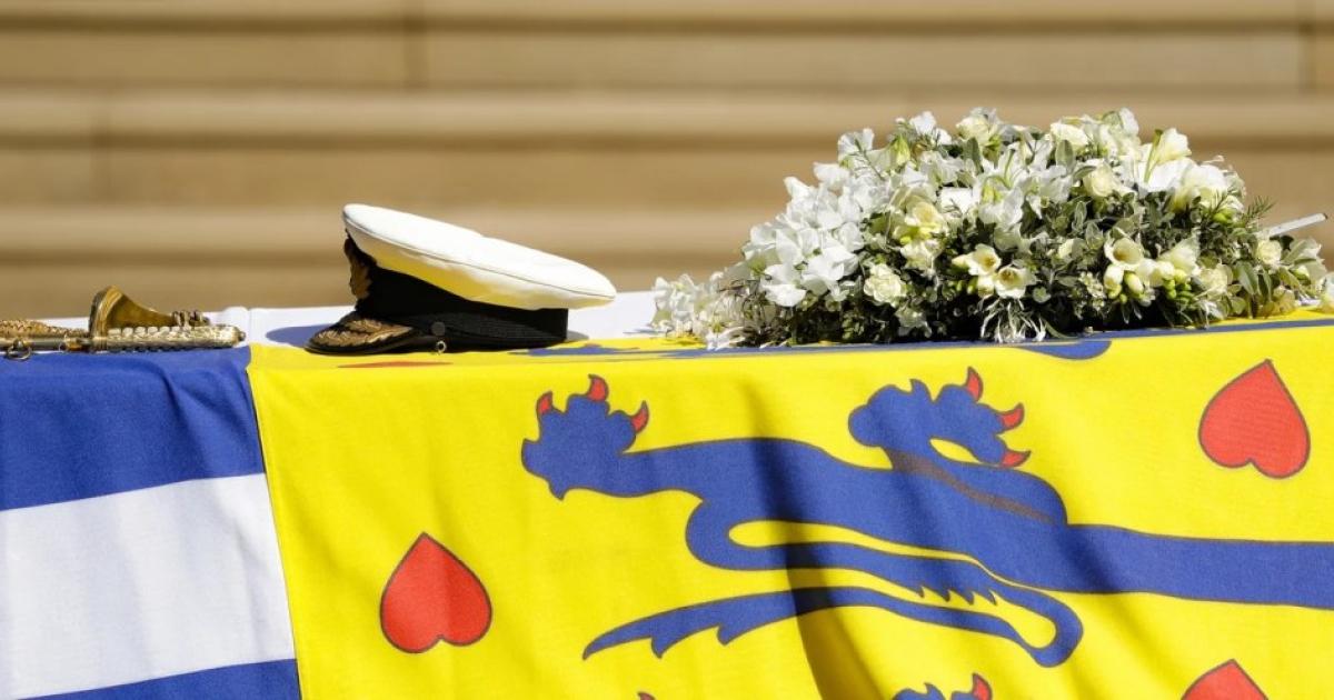 Το φέρετρο του πρίγκιπα Φιλίππου σκέπαζε η προσωπική σημαία του, αποτελούμενη από τον σταυρό της ελληνικής σημαίας, τις μαύρες και άσπρες ρίγες της οικογένειας Μαουντμπάντεν, το κάστρο του Εδιμβούργου και τον θυρεό του Οίκου της Δανίας.