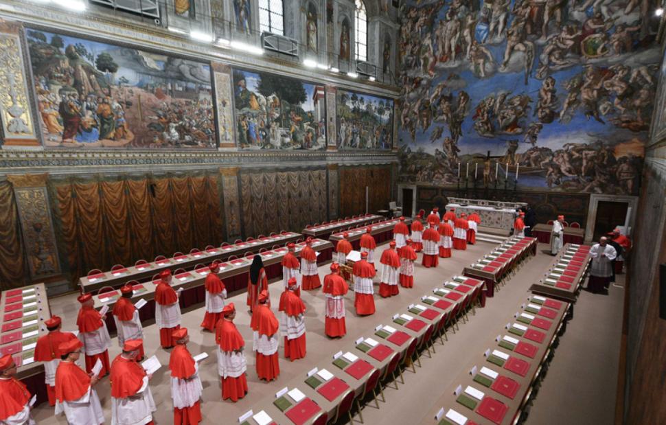 Η διαδικασία είναι αυστηρά τυπική και αμετάβλητη: κάθε καρδινάλιος γράφει την ψήφο του σε μια απλή κάρτα με την καθιερωμένη λατινική φράση «Eligo in Summum Pontificem», προσθέτοντας το όνομα του εκλεκτού του. Έπειτα, ακολουθώντας την ιεραρχική τους σειρά, οι καρδινάλιοι σχηματίζουν γραμμή και ρίχνουν την κάρτα τους στην κάλπη.