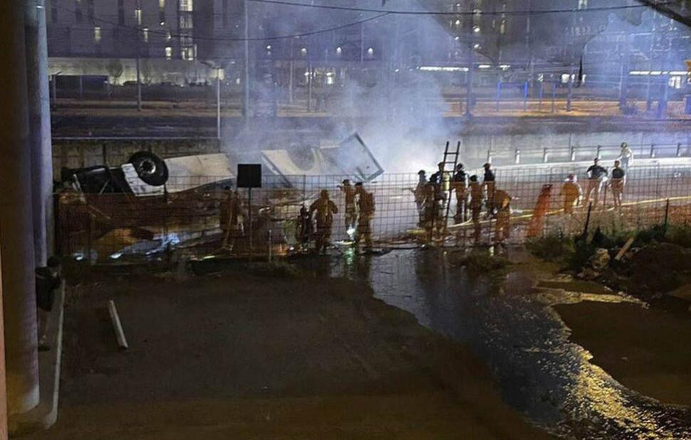 Ο οδηγός φέρεται να προσπάθησε να ελέγξει την κατάσταση, αλλά δεν μπόρεσε να αποφύγει την πτώση του λεωφορείου σε σιδηροτροχιά, η οποία βρίσκεται ακριβώς κάτω από την οδογέφυρα.