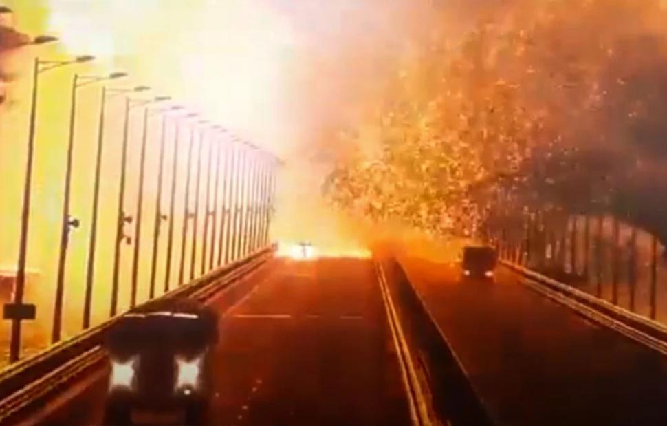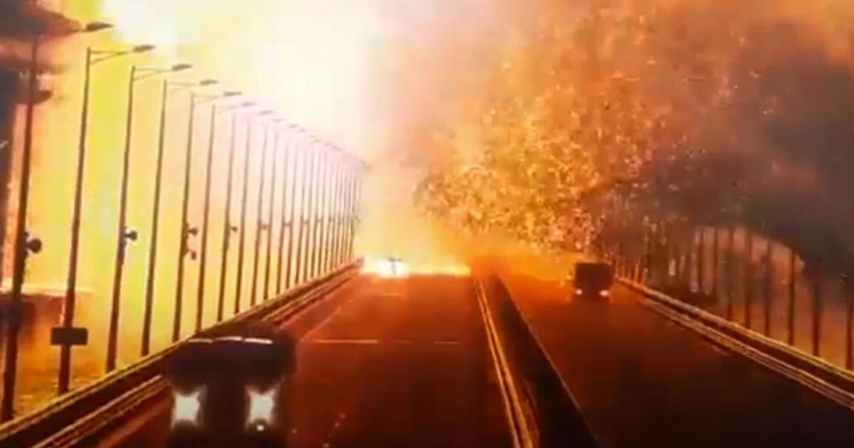 Η στιγμή της μεγάλης έκρηξης που σημειώθηκε στη γέφυρα στο στενό του Κέρτς που συνδέει τη Ρωσία με την Κριμαία έχει καταγραφεί σε βίντεο-ντοκουμέντο.