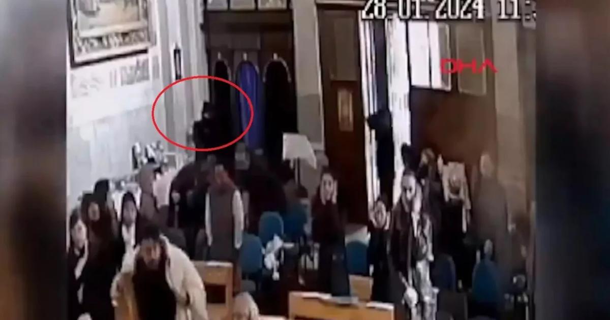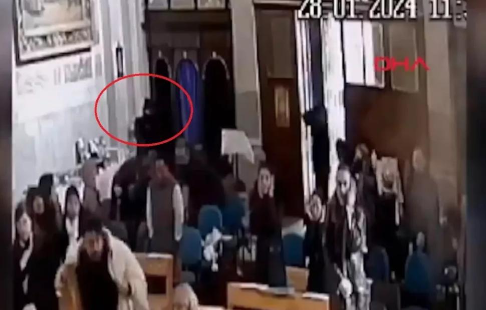 Ένα σοκαριστικό βίντεο από την κάμερα ασφαλείας κατέγραψε τη στιγμή που πέφτουν οι πυροβολισμοί μέσα στην καθολική εκκλησία της Σάντα Μαρία στην Κωνσταντινούπολη.