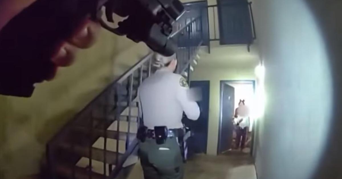 Το υλικό δόθηκε στη δημοσιότητα, την Παρασκευή, από το τμήμα του σερίφη του Λος Άντζελες και δείχνει τον αστυνομικό, Ty Shelton, να πυροβολεί την 27χρονη τέσσερις φορές μέσα σε περίπου τρία δευτερόλεπτα από την είσοδό του στο σπίτι της.