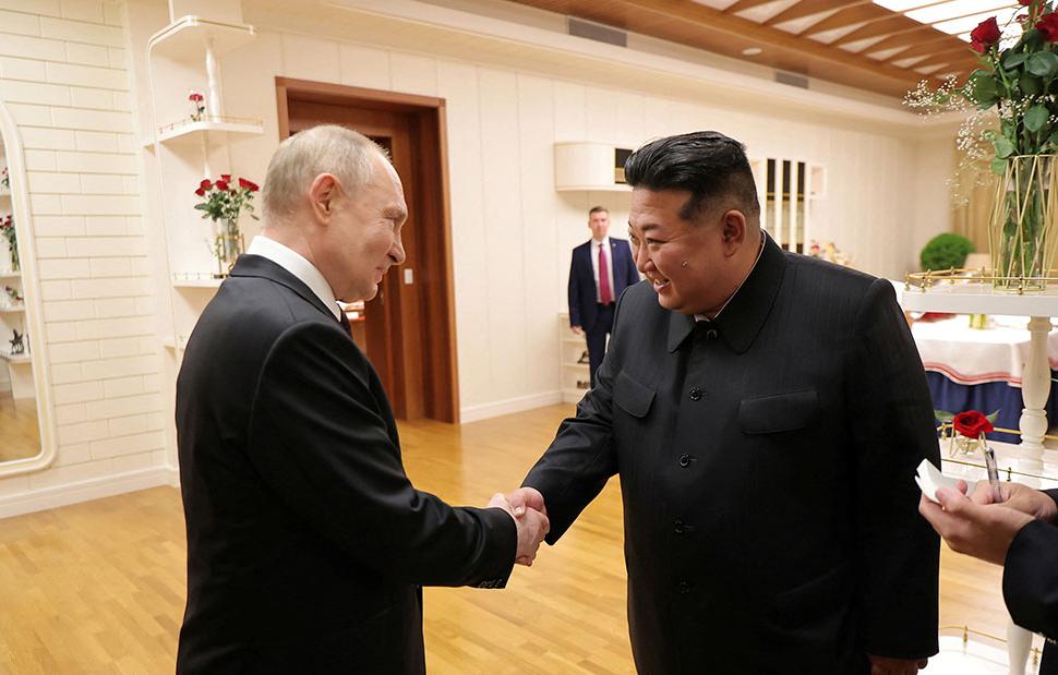 Ενισχύεται το μέτωπο Ρωσίας - Βόρειας Κορέας κατά της Δύσης στην Πιονγιάνγκ. Ο Ρώσος πρόεδρος Βλαντίμιρ Πούτιν και ο ηγέτης της Βόρειας Κορέας Κιμ Γιονγκ Ουν είχαν συνάντηση κορυφής την Τετάρτη μετά από μια μεγάλη τελετή υποδοχής στην πλατεία Κιμ Ιλ Σουνγκ στην βορειοκορεατική πρωτεύουσα, ανέφεραν ρωσικά μέσα ενημέρωσης, με τους δυο ηγέτες να δεσμεύονται να αναπτύξουν τους δεσμούς των εθνών τους.