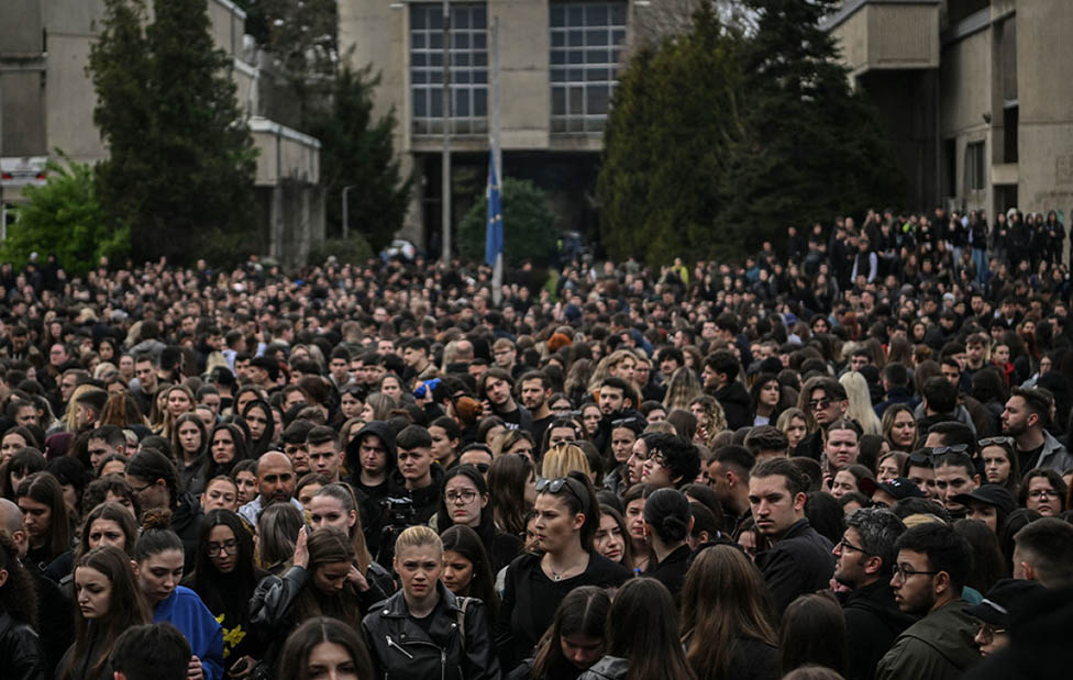 Μερικές χιλιάδες φοιτητές και μαθητές στα Σκόπια συγκεντρώθηκαν το μεσημέρι στην πλατεία του κρατικού πανεπιστημίου της πόλης «Κύριλλος και Μεθόδιος» για να αποτίσουν φόρο τιμής στους 59 νεκρούς της τραγωδίας που σημειώθηκε τα ξημερώματα της Κυριακής σε νυχτερινό κλαμπ στην πόλη Κότσανι.
