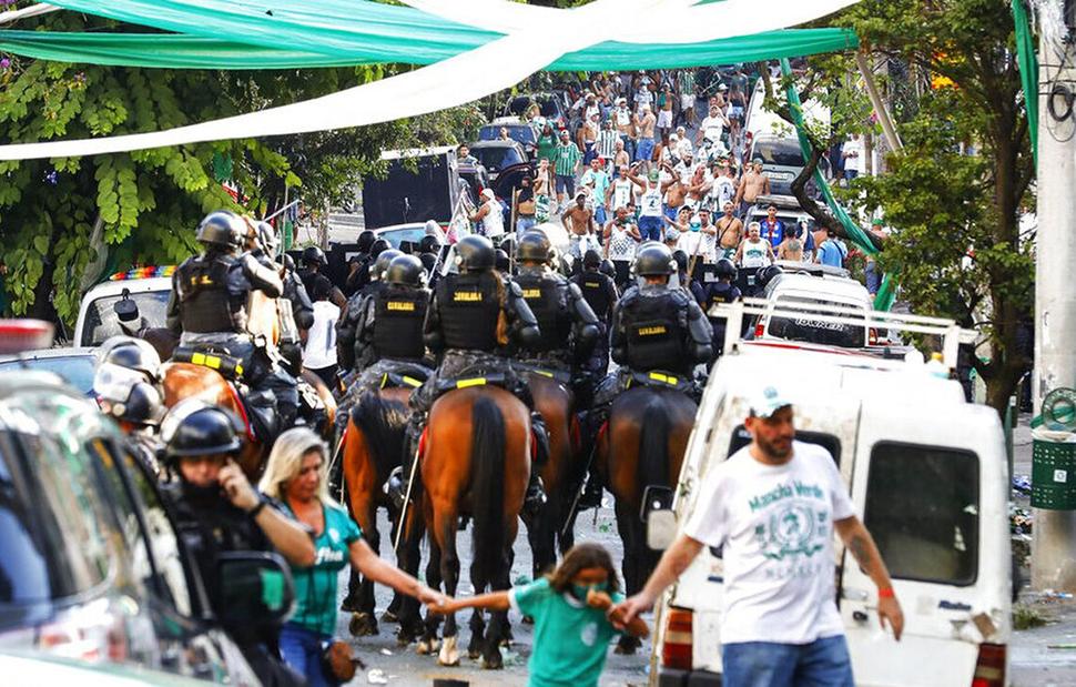 Χιλιάδες οπαδοί της Παλμέιρας, μεταξύ των οποίων οικογένειες με τα παιδιά τους, είχαν συγκεντρωθεί το απόγευμα κοντά στο γήπεδο της αγαπημένης τους ομάδας, στα δυτικά της βραζιλιάνικης μεγαλούπολης, για να παρακολουθήσουν τον αγώνα από την τηλεόραση, ενώ τα επεισόδια έληξαν, με την παρέμβαση ισχυρών αστυνομικών δυνάμεων.