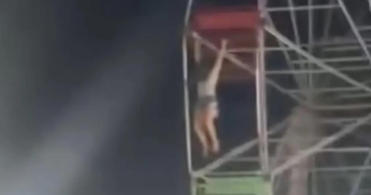 Woman hanging outside of Ferris Wheel 😳 pic.twitter.com/EP8J5lk1Sl