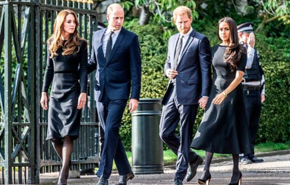 Τα δύο αδέλφια βρέθηκαν στο χώρο που βρίσκονταν τα αφιερώματα και τα λουλούδια του πλήθους προς τιμήν της βασίλισσας Ελισάβετ, που έφυγε από τη ζωή την Πέμπτη.