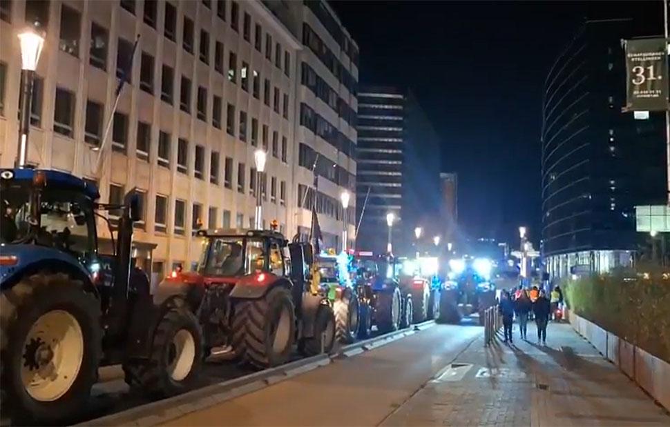 Σε νυχτερινό σκηνικό έντασης εξελίχθηκε η κινητοποίηση των αγροτών στις Βρυξέλλες, όταν λίγο πριν τα μεσάνυχτα περισσότερα από 100 τρακτέρ απέκλεισαν τη λεωφόρο Rue de la Loi, μπροστά από τα κτίρια της Ευρωπαϊκής Επιτροπής και του Ευρωπαϊκού Συμβουλίου, αιφνιδιάζοντας τις Αρχές.
